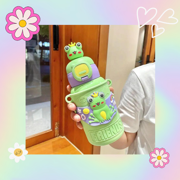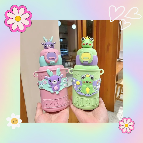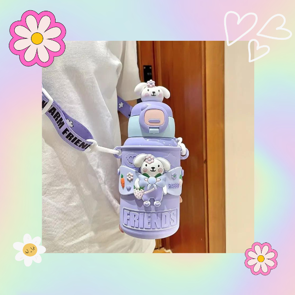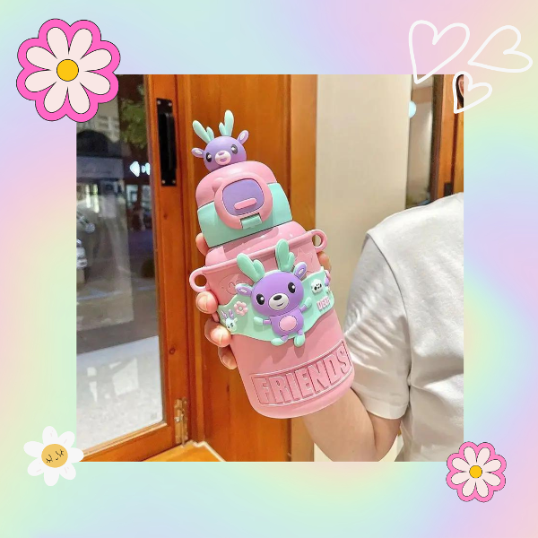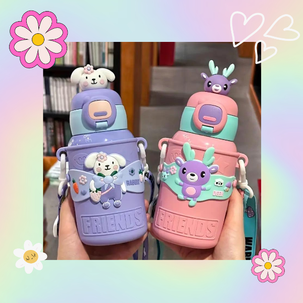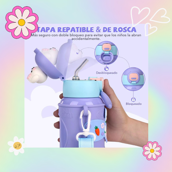 Botella Hoppy infantil Luo capacidad de 450ml con cinta para colgary funda, acero inoxidable 🩷 🤩